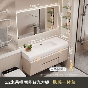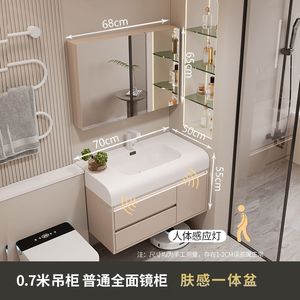 轻奢现代肤感一体盆浴室柜简约卫生间洗漱台洗手池洗脸盆柜组合