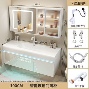 白色-90肤感一体盆 #升级智能玻璃门镜柜