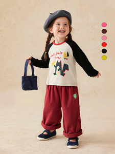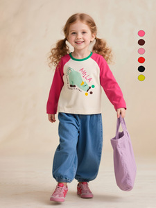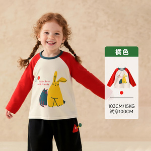 童贝童装2025年秋季新款女童长袖T恤卡通休闲撞色插肩袖圆领上衣
