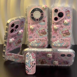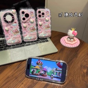 卡通冰淇淋kt猫苹果16手机壳iPhone15promax透明14镜子13支架12硬