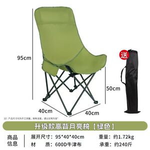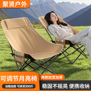 户外高背月亮椅可调节折叠露营椅子便携野餐钓鱼沙滩椅午休躺椅