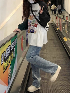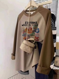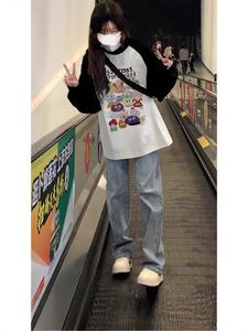 学生纯棉长袖T恤少女春秋季初中高中生宽松大码百搭打底插肩上衣