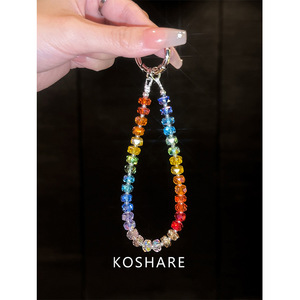 彩虹糖夏日清新斜挎可背手机链条时尚防摔手拎水晶挂饰甜美多巴胺