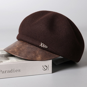 英伦复古贝雷帽女羊毛毡帽画家帽秋冬韩版保暖前进帽子八角帽批发