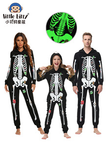 跨境欧美2025秋冬童装万圣节连体衣睡衣亲子装家居服夜光印花服装