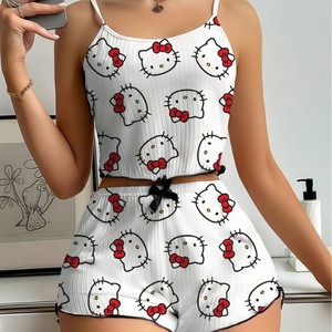 2025新款欧美跨境女大码吊带背心短裤家居服睡衣睡裤套装休闲亲肤