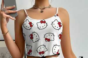 白色印花吊带