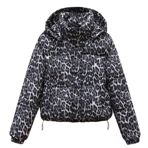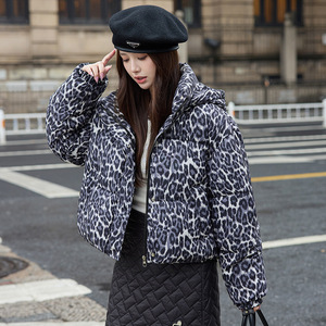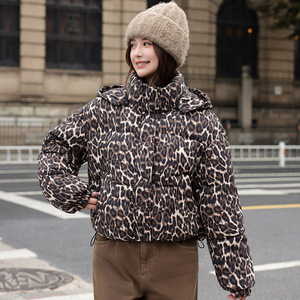 2025冬装可拆卸帽面包服加厚印花棉袄宽松小众棉服豹纹羽绒棉衣女