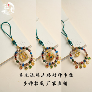 新品香灰琉璃多宝汽车挂件五路财神高档车挂黄财神唐卡招财挂件