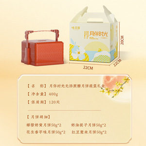 【无添加蔗糖月饼8枚装】月伴食光2层提篮月饼礼盒