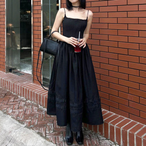 亚马逊气质新款纯色胸型分割显瘦吊带长裙伞裙2024夏季收腰连衣裙