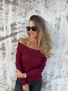 2025欧美女装秋冬季一字肩纯色休闲修身针织毛衣女长袖上衣女