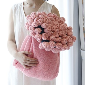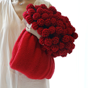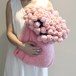 轻奢玫瑰花束毯子手工编织羊毛款创意针织渐变色情人节粉色送女友
