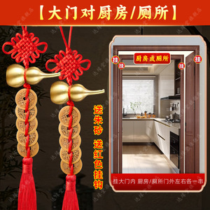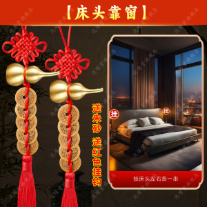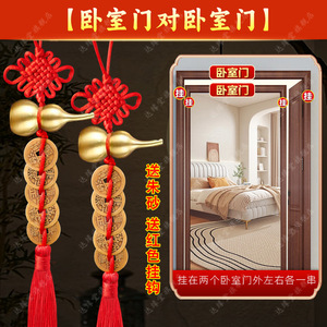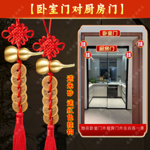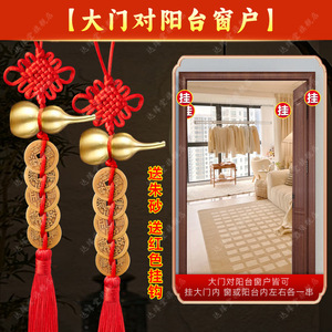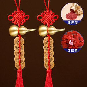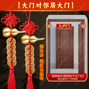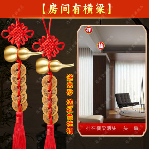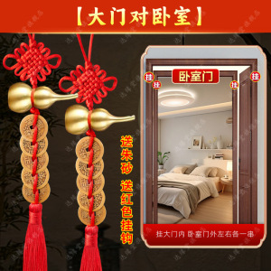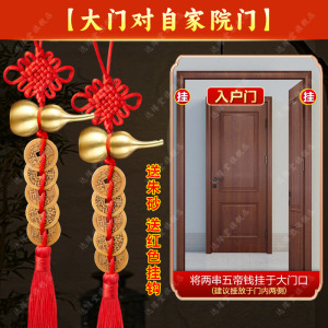 纯黄铜葫芦五帝钱真品铜钱入户门对门大门卧室厨房朱砂中国结挂件