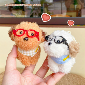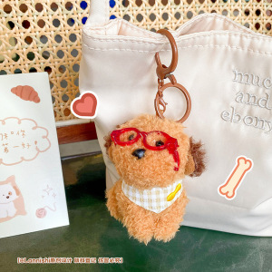 眼镜小狗毛绒钥匙扣汪旺家族布艺公仔小狗蹲蹲玩偶情侣闺蜜挂饰