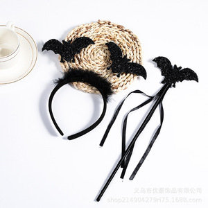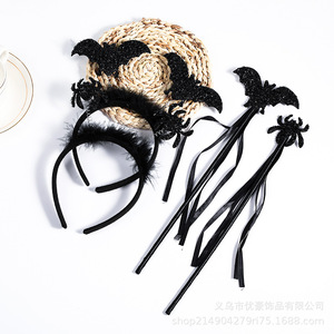 万圣节蝙蝠蜘蛛发箍魔法棒节日派对表演装扮道具儿童创意蝙蝠头箍
