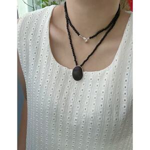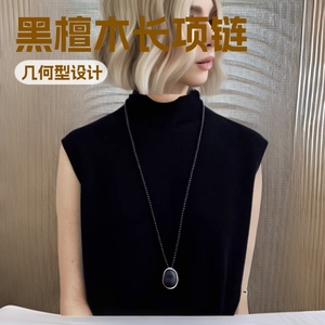 博主同款轮廓黑檀木长项链 小众设计高级感手工串珠质感毛衣链女