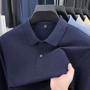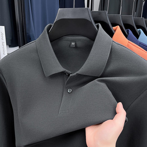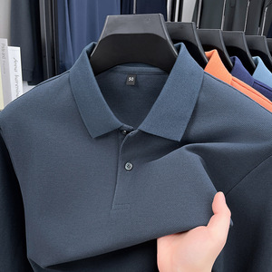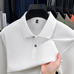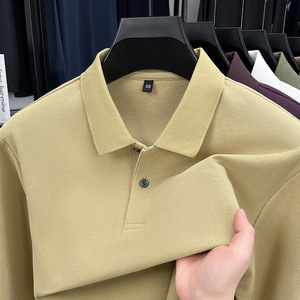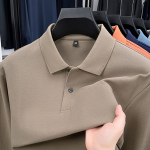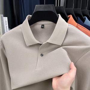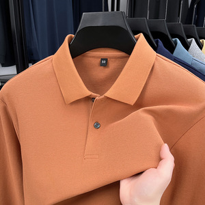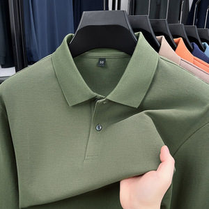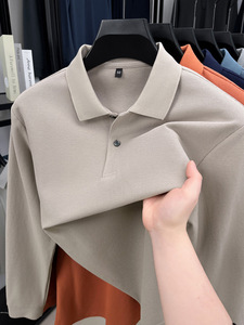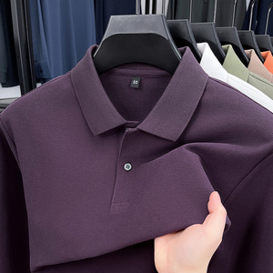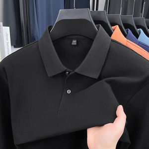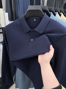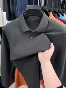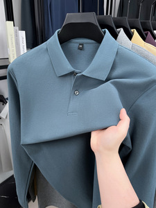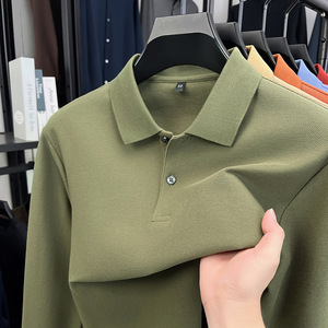 直播批发纯棉POLO衫男士春秋季长袖高级感纯色100%珠地棉翻领t恤