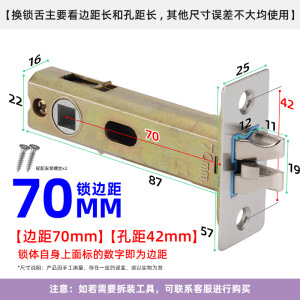 卫生间锁芯锁舌单舌木门锁房门锁浴室厕所单锁舌配件锁舌头通用型