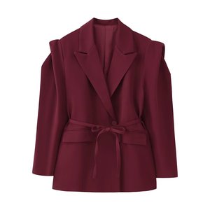 现货纯色时尚翻领收腰系带西装外套2025早秋欧美跨境新款西服夹克