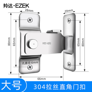免打孔加厚不锈钢门扣左右开门扣锁搭扣插销防盗锁带锁孔锁扣门栓