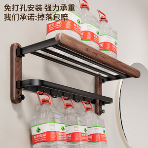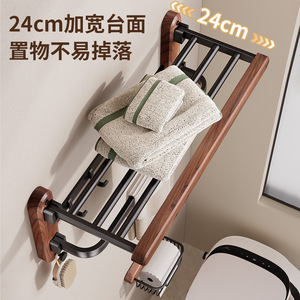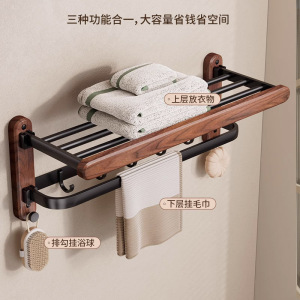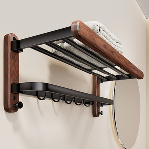 原木风浴室折叠浴巾架免打孔胡桃木卫生间收纳置物架子卫浴五件套