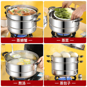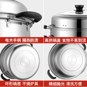 不锈钢特厚双层蒸锅家用三层蒸馒头一体燃气灶电磁炉商用多层汤锅