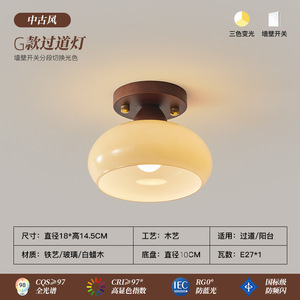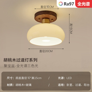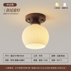 走廊灯过道灯轻奢胡桃木黄铜中式吸顶灯复古侘寂风入户玄关阳台灯