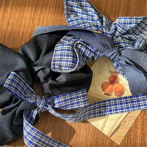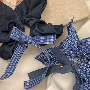 韩系蝴蝶结牛仔蓝色格子方巾大肠发圈女气质方形发饰头绳皮筋夏季