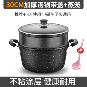 汤锅家用不粘锅麦饭石小煮锅加厚双耳蒸锅电磁炉燃气灶专用锅煮汤