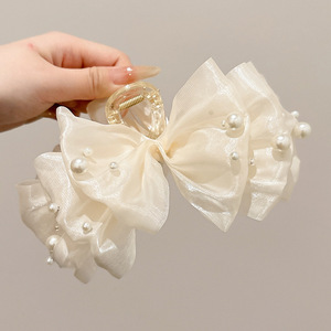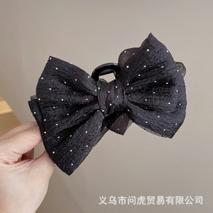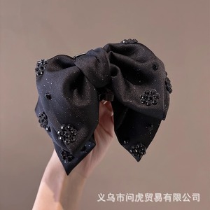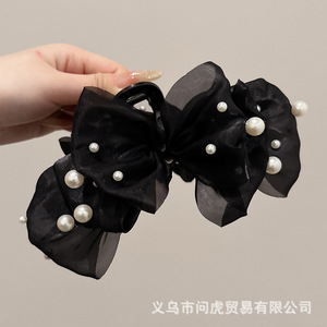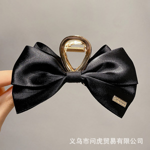 黑色缎面蝴蝶结抓夹女高级感2025新款后脑勺发夹气质头发夹子头饰