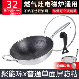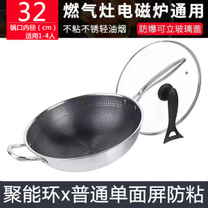 32cm双屏无耳不锈钢圆底锅【送锅盖】