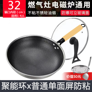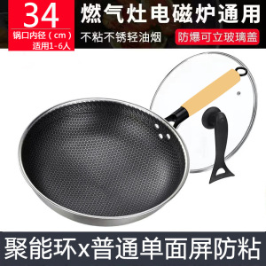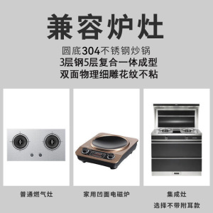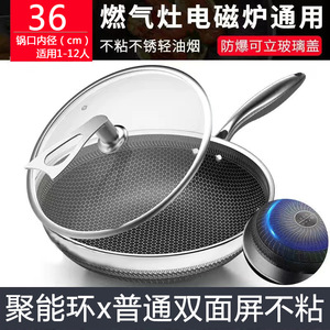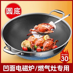 不粘锅炒锅开好锅炒菜家用304凹面电磁炉专用商用不锈钢锅圆底锅