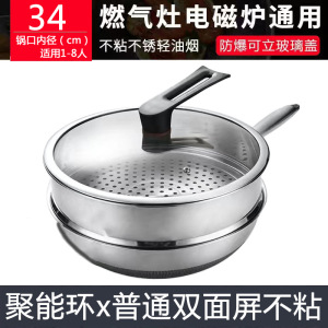 34cm双耳双屏不锈钢圆底锅【送锅盖+蒸格+锅铲】