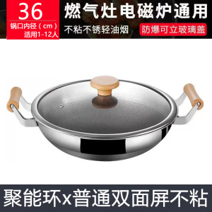 36cm双耳双屏不锈钢圆底锅【送锅盖】
