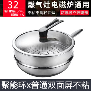 32cm双屏不锈钢圆底锅【送蒸格+锅盖】