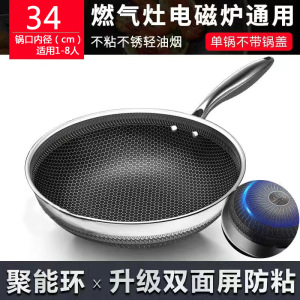 34cm双屏无耳不锈钢圆底锅【无锅盖】
