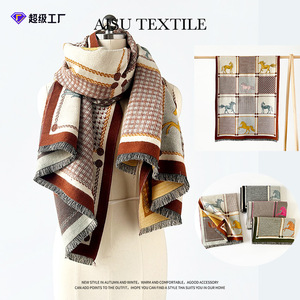 欧美时尚ins风大披肩秋冬女士羊毛围巾保暖披肩简约百搭加厚围脖