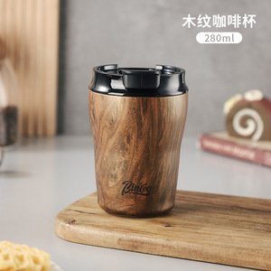 Bincoo复古咖啡杯木纹新款保温杯车载男士便携挂耳咖啡随行杯水杯