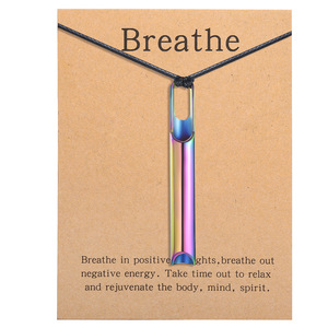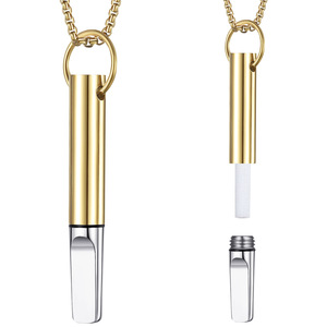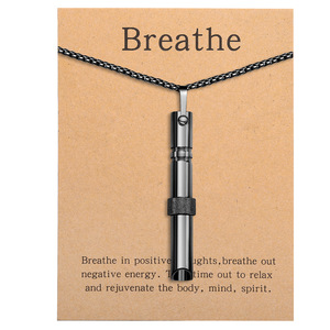 新品现货亚马逊螺纹扭牙不锈钢冥想正念吊坠项链钛钢口哨调节呼吸