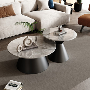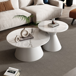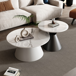 现代简约岩板茶几轻奢小户型圆茶几圆形沙发边几家用客厅小圆桌