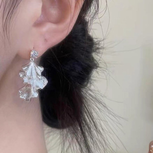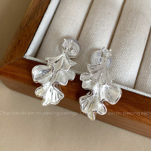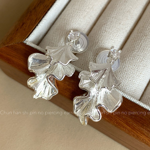 银色褶皱裙边耳坠时尚耳环女小众设计高级感轻奢耳饰无耳洞耳夹