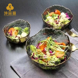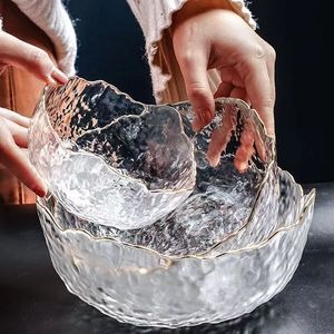 日式锤纹透明金边玻璃碗水果盘ins高颜值人气 水果碗沙拉碗泡面碗