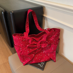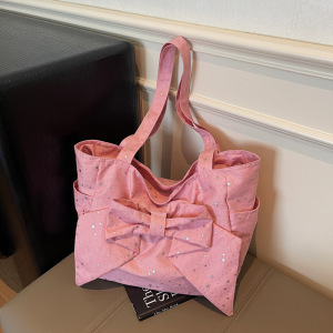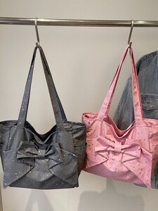 复古y2k辣妹单肩包女韩国小众蝴蝶结帆布包休闲百搭大容量托特包