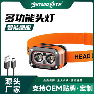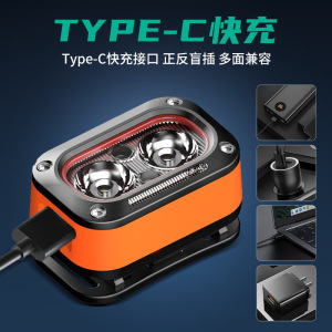 跨境爆款多功能强光超长续航头灯 Type-C充电夜钓三光源LED头戴灯