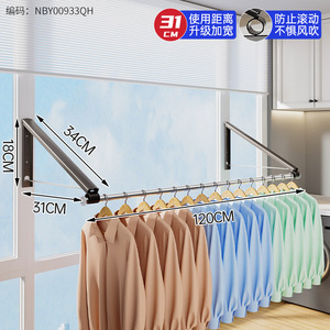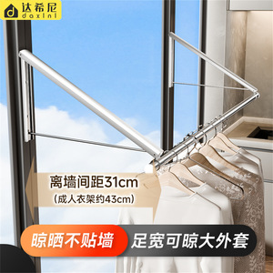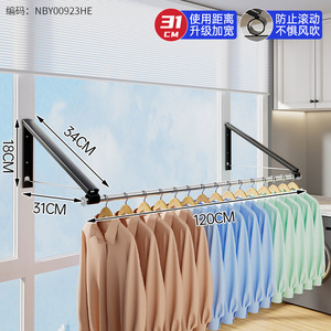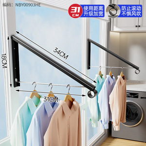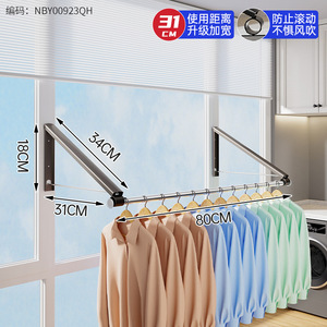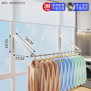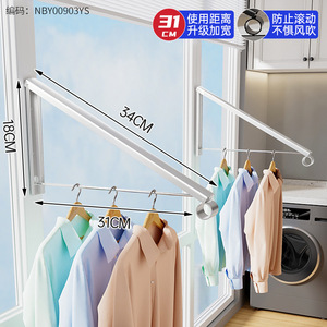太空铝隐形窗户晾衣架阳台家用飘窗折叠晾衣架免打孔壁挂式晒挂杆