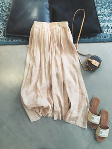 DZ定纺真丝亚麻 植物染色松紧腰A字半裙