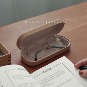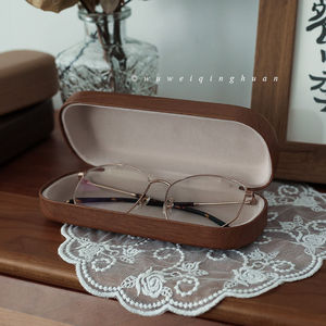 ins复古仿木纹小众日系少女高级简约文艺便携式眼镜盒墨镜收纳盒