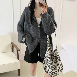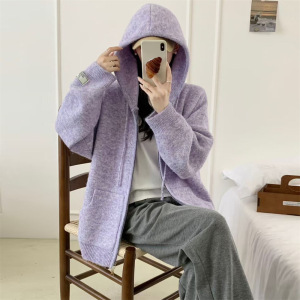 软糯连帽拉链毛衣开衫外套女秋冬新款宽松慵懒风加厚休闲针织上衣