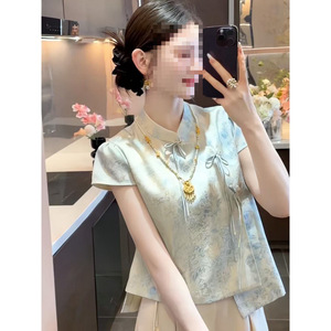 新中式缎面提花无袖背心衬衫女2025夏季新款洋气减龄气质温婉上衣